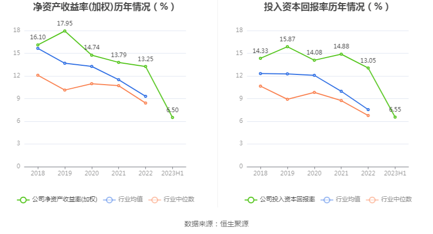 数据显示,2023年上半年公司加权平均净资产收益率为6.50%,较上年同期增长0.06个百分点;公司2023年上半年投入资本回报率为6.55%,较上年同期增长0.03个百分点。