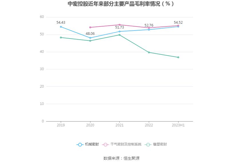 分产品看,机械密封、干气密封及控制系统、橡塑密封2023年上半年毛利率分别为54.52%、55.11%、36.85%。