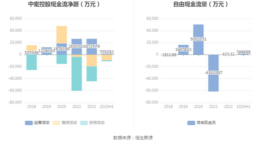 进一步统计发现,2023年上半年公司自由现金流为7494.68万元,相比上年同期增长467.22%。