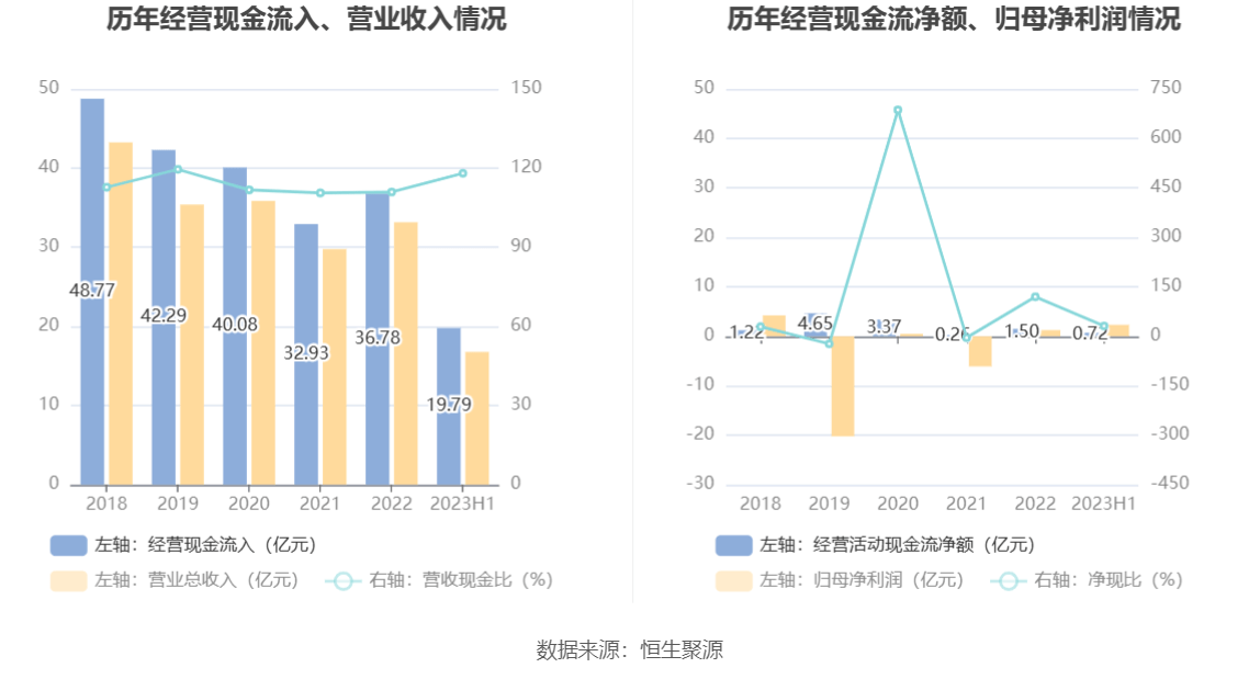 2023年上半年,公司营业收入现金比为118.03%,净现比为31.14%。