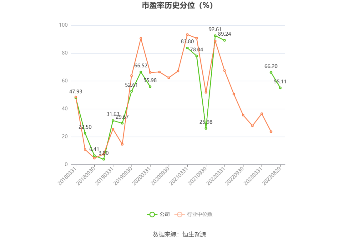 市盈率为负时,不显示当期分位数,会导致折线图中断。
