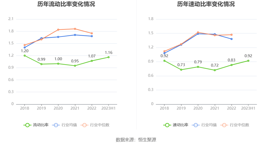 2023年上半年,公司流动比率为1.16,速动比率为0.92。