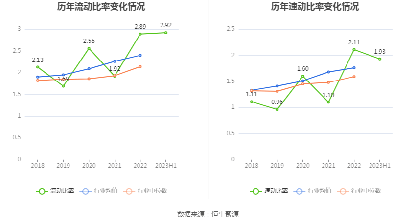 2023年上半年,公司流动比率为2.92,速动比率为1.93。