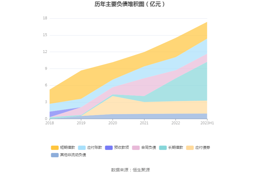 负债重大变化方面,截至2023年二季度末,公司长期借款较上年末增加69.94%,占公司总资产比重上升6.52个百分点;短期借款较上年末减少12.90%,占公司总资产比重下降1.29个百分点;应付账款较上年末增加15.51%,占公司总资产比重上升0.70个百分点;一年内到期的非流动负债较上年末增加131.76%,占公司总资产比重上升0.49个百分点。