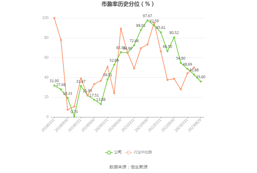 市盈率为负时,不显示当期分位数,会导致折线图中断。