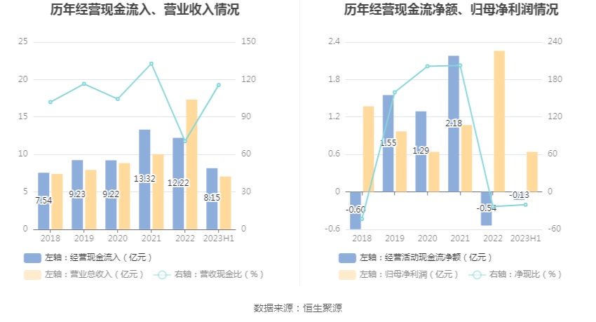 2023年上半年,公司营业收入现金比为115.63%,净现比为-20.62%。