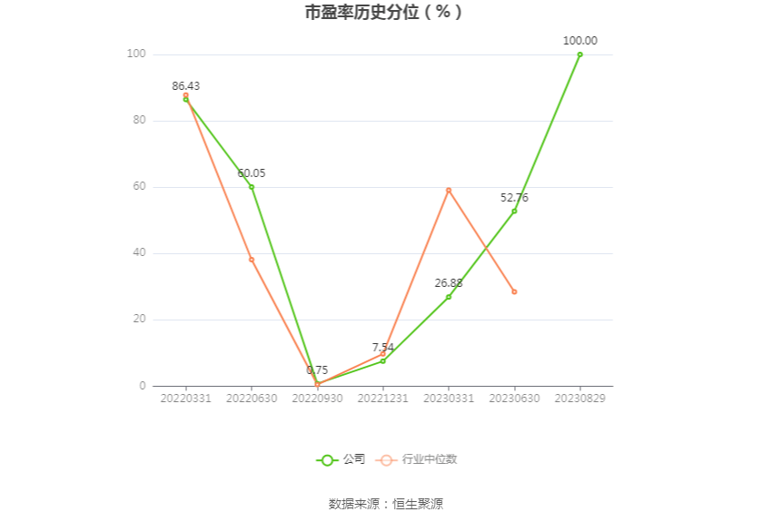 市盈率为负时,不显示当期分位数,会导致折线图中断。