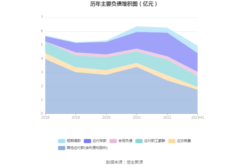 负债重大变化方面,截至2023年二季度末,公司应付账款较上年末减少21.08%,占公司总资产比重下降1.21个百分点;短期借款较上年末增加50.77%,占公司总资产比重上升0.96个百分点;合同负债较上年末增加16.85%,占公司总资产比重上升0.28个百分点;一年内到期的非流动负债较上年末减少13.88%,占公司总资产比重下降0.04个百分点。