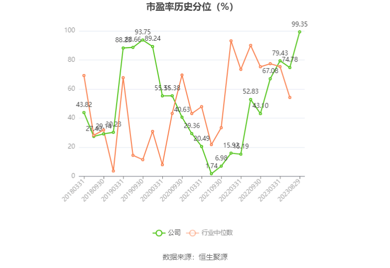 市盈率为负时,不显示当期分位数,会导致折线图中断。