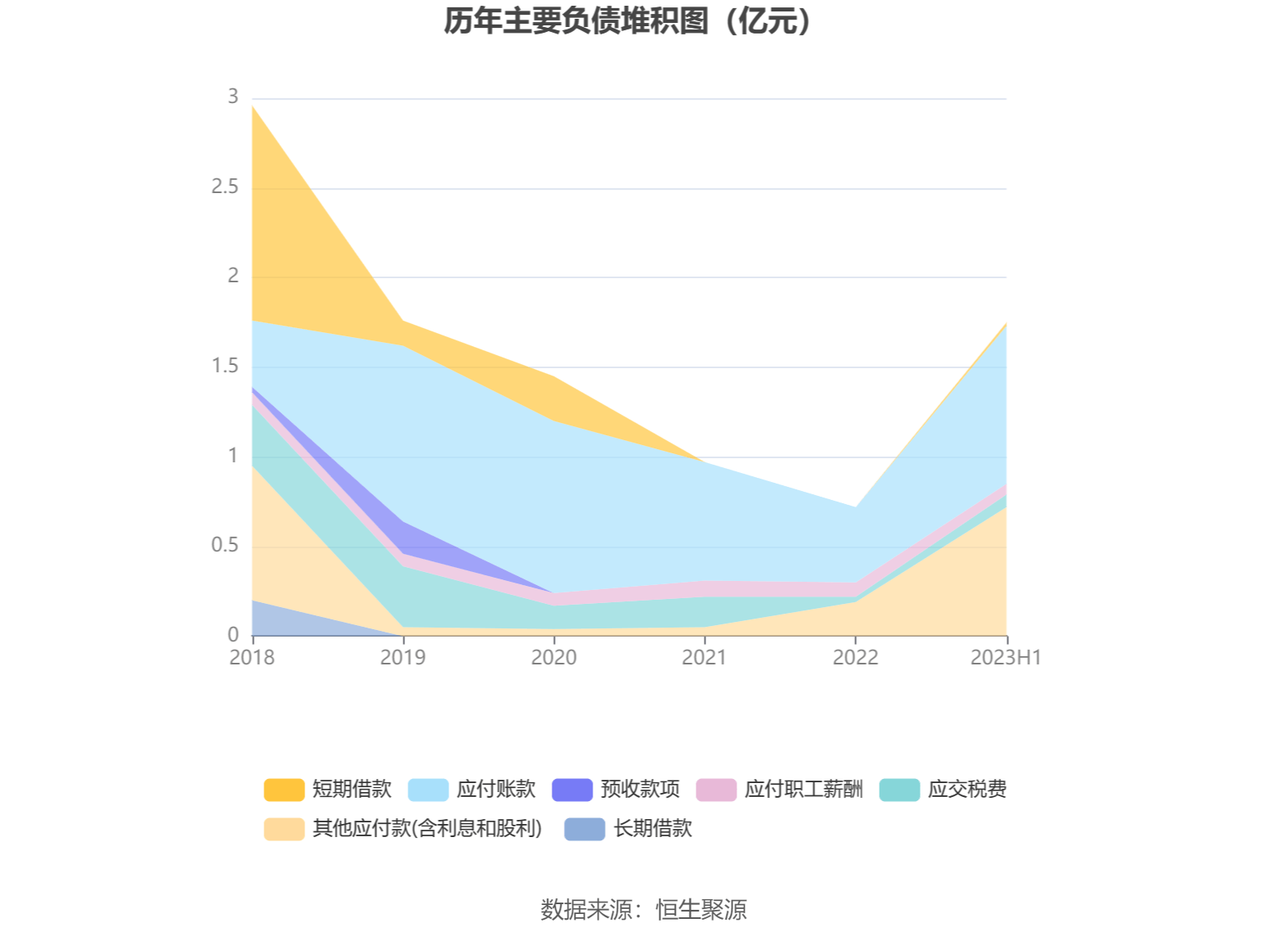 负债重大变化方面,截至2023年二季度末,公司应付账款较上年末增加108.83%,占公司总资产比重上升3.32个百分点;一年内到期的非流动负债较上年末减少82.81%,占公司总资产比重下降0.29个百分点;合同负债较上年末减少13.60%,占公司总资产比重下降0.06个百分点。