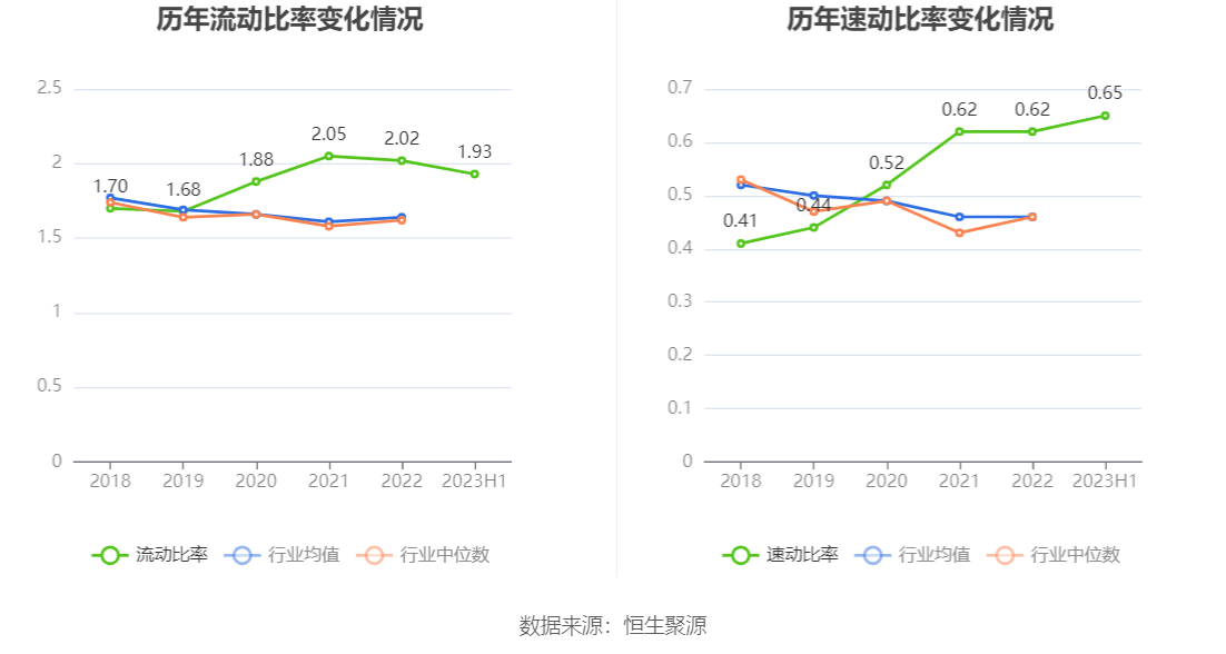 2023年上半年,公司流动比率为1.93,速动比率为0.65。