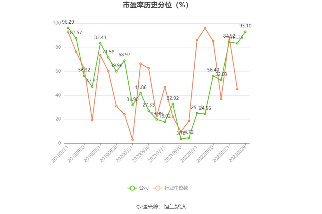 市盈率为负时,不显示当期分位数,会导致折线图中断。
