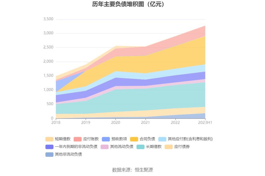 负债重大变化方面,截至2023年二季度末,公司合同负债较上年末增加23.19%,占公司总资产比重上升2.24个百分点;长期借款较上年末增加5.06%,占公司总资产比重下降1.05个百分点;应付账款较上年末增加10.52%,占公司总资产比重下降0.01个百分点;其他流动负债较上年末增加31.90%,占公司总资产比重上升0.40个百分点。