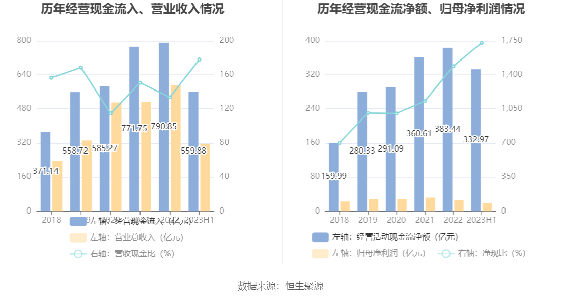 2023年上半年,公司营业收入现金比为177.86%,净现比为1728.57%。