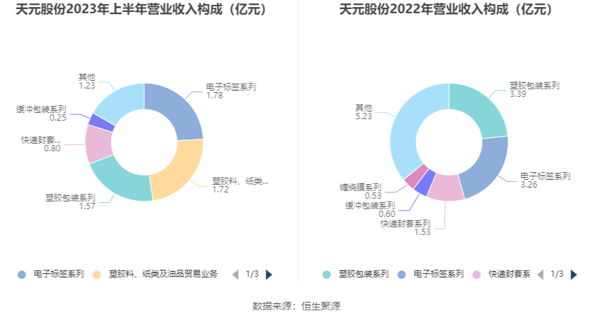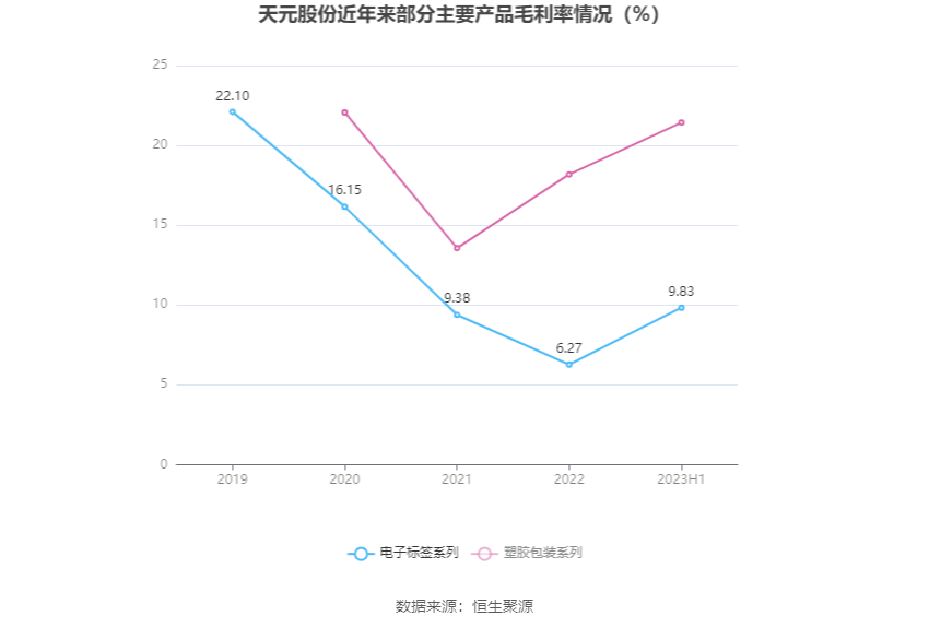 分产品看,电子标签系列、塑胶料、纸类及油品贸易业务、塑胶包装系列2023年上半年毛利率分别为9.83%、1.82%、21.43%。