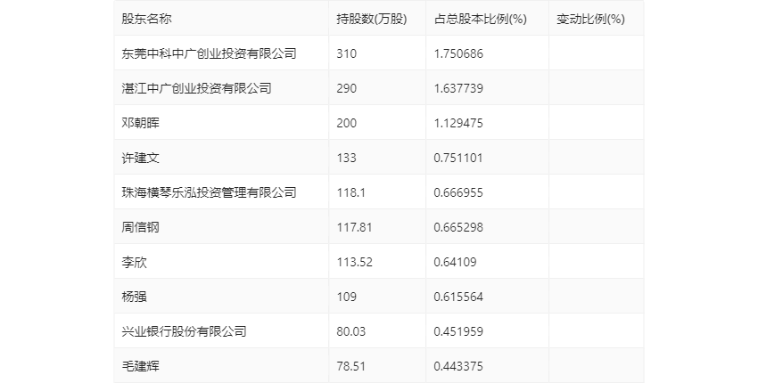 半年报显示,2023年上半年末的公司十大流通股东中,新进股东为兴业银行股份有限公司,取代了一季度末的纪晟亭。在具体持股比例上,许建文、周信钢、李欣、毛建辉持股有所下降。