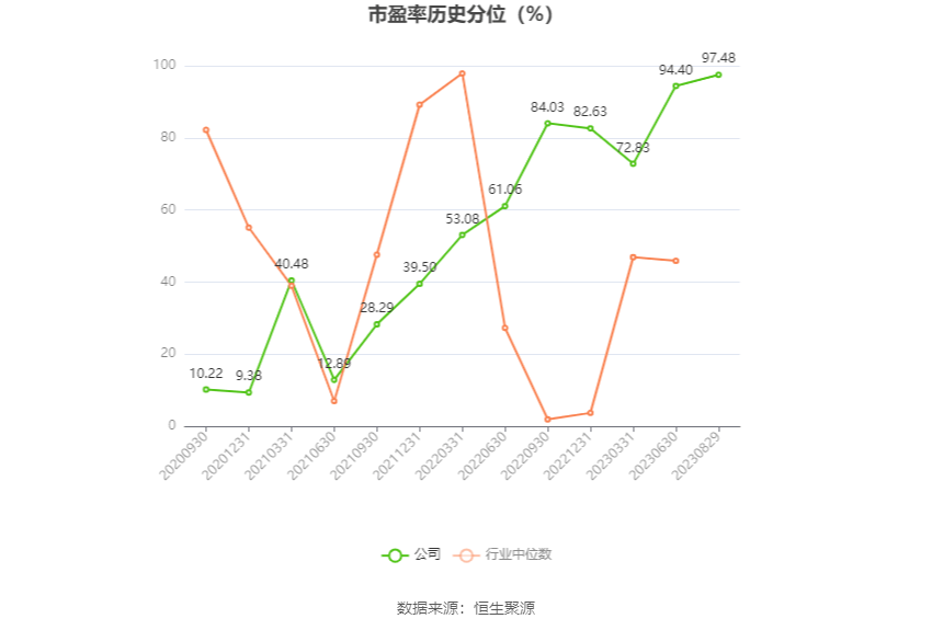 市盈率为负时,不显示当期分位数,会导致折线图中断。