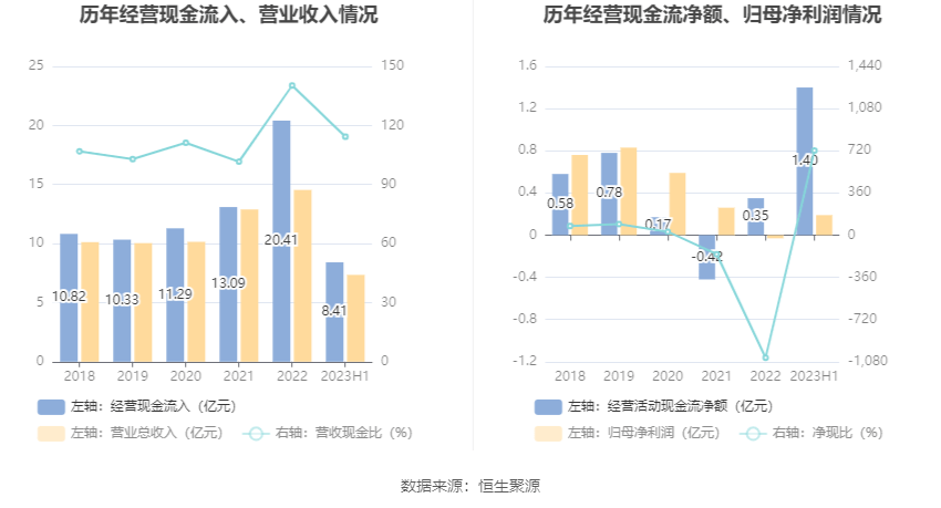 2023年上半年,公司营业收入现金比为114.30%,净现比为720.98%。
