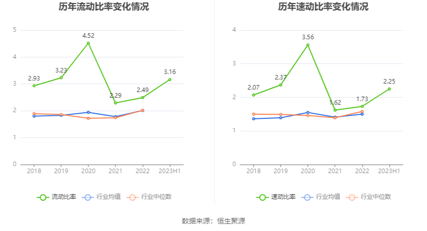 2023年上半年,公司流动比率为3.16,速动比率为2.25。
