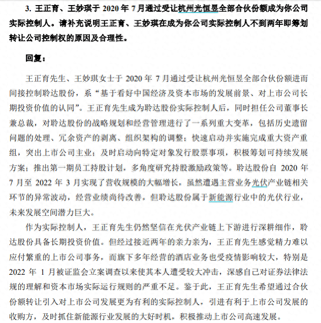 而对比此前,王正育2020年7月才成为公司实控人,随后不到两年即筹划转让公司控制权,因此该行为也一度引来深交所的关注函,询问其原因及合理性。