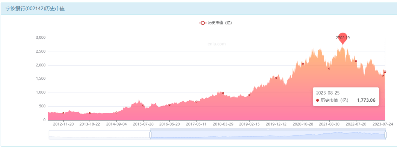 也是在2022年,宁波银行的市值一度超过2000亿元,被称为城商行中的“市值之王”。