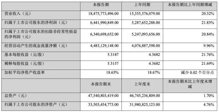 国内医疗器械龙头迈瑞医疗(300760)8月29日晚间披露半年报,公司上半年实现营业收入184.76亿元,同比增长20.32%;净利润64.42亿元,同比增长21.83%;基本每股收益5.32元。