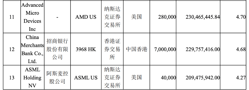 他“腰部持仓”显示,除了AMD(超威半导体)、阿斯麦控维持了此前的持有数量,易方达亚洲精选还纳入了微软、KLAC(科天半导体公司)、三星等。