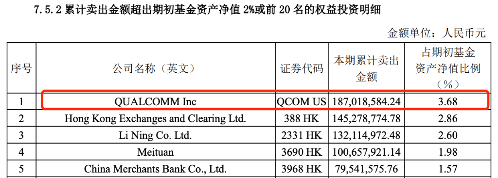 有趣的是,不同于其他3只在管基金上半年累计卖出第一名都是港交所的情况,易方达亚洲精选上半年累计卖出第一名是高通。