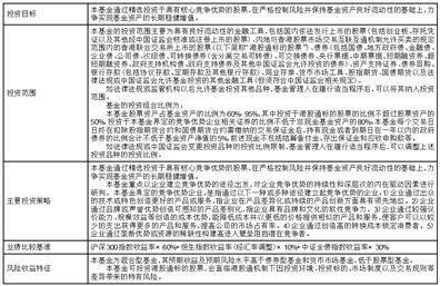 本基金为混合型基金,本基金股票资产占基金资产的比例为60%-95%,其中投资于本基金界定的竞争优势企业相关证券的比例不低于非现金基金资产的80%,本基金需承担证券市场的系统性风险,以及个别证券特有的非系统性风险。