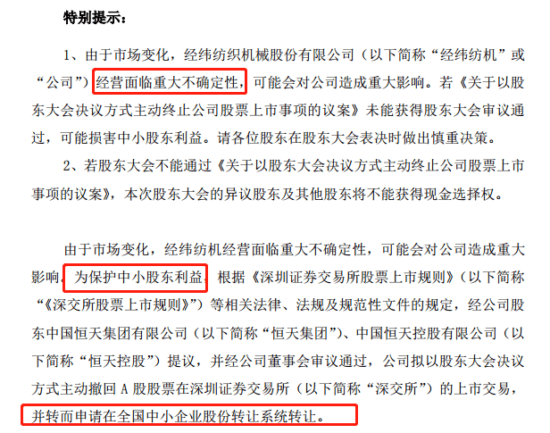 8月29日晚间约10点30分,经纬纺机公告,公司拟以股东大会决议方式,主动撤回A股股票在深交所的上市交易,并转而申请在全国中小企业股份转让系统转让。该公司股票今日复牌。
