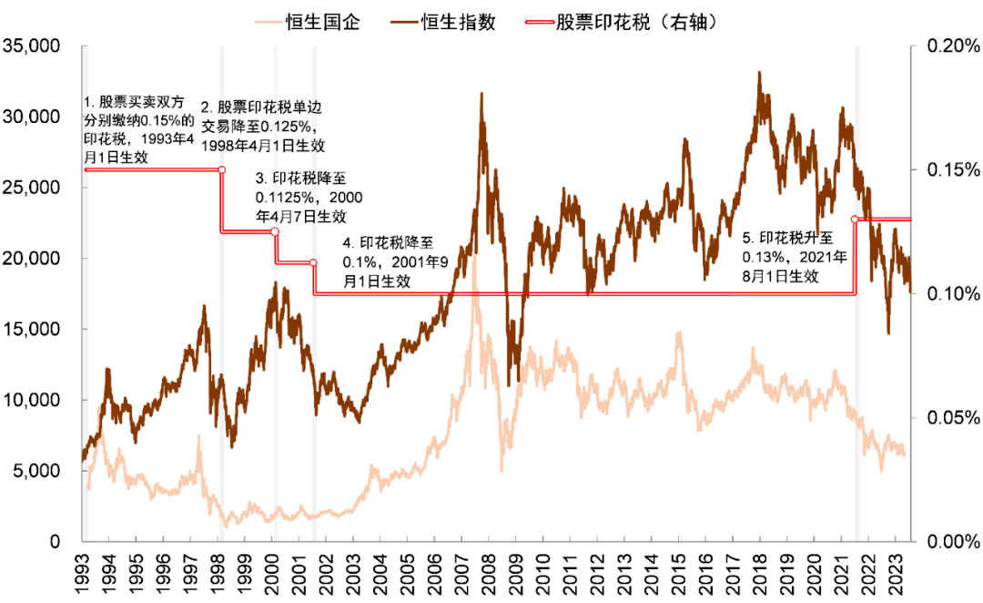 有研究机构指出,自1993年以来,港股印花税经历三次下调,均对应市场相对低迷阶段。历史上港股印花税的短期下调可能更多从情绪上提振市场,指数层面迎来阶段性反弹;中长期有利于降低交易摩擦成本,增强市场流动性。