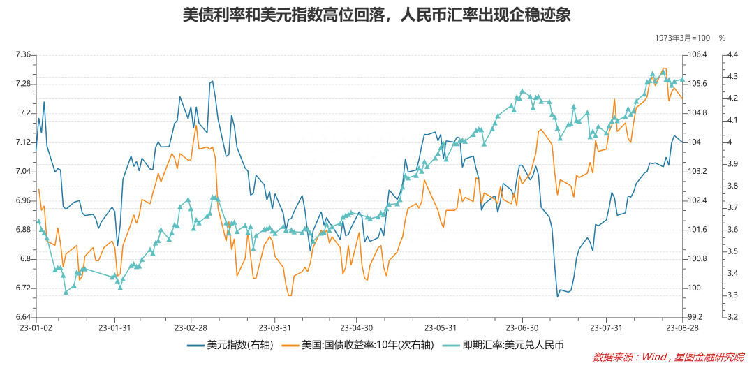 当前,10年期美债利率高位震荡回落,美元指数有见顶迹象,叠加我国央行释放出明确的稳汇率信号,人民币汇率已出现企稳迹象。人民币汇率的企稳,会减弱北向资金流出的动力。
