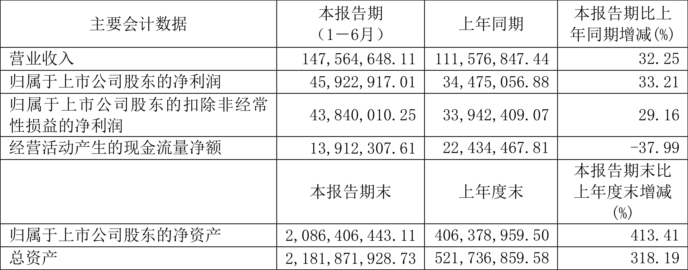 2023上半年,公司经营活动现金流净额为1391.23万元,同比下降37.99%,主要系以前年度缓缴的增值税及附加税在本期完成缴纳所致;筹资活动现金流净额16.28亿元,同比增加16.31亿元,主要系公司上市获得募集资金,导致筹资活动现金流入增加所致;投资活动现金流净额-1.08亿元,上年同期为-2.07亿元,主要系本期理财赎回金额较上年同期增加导致。