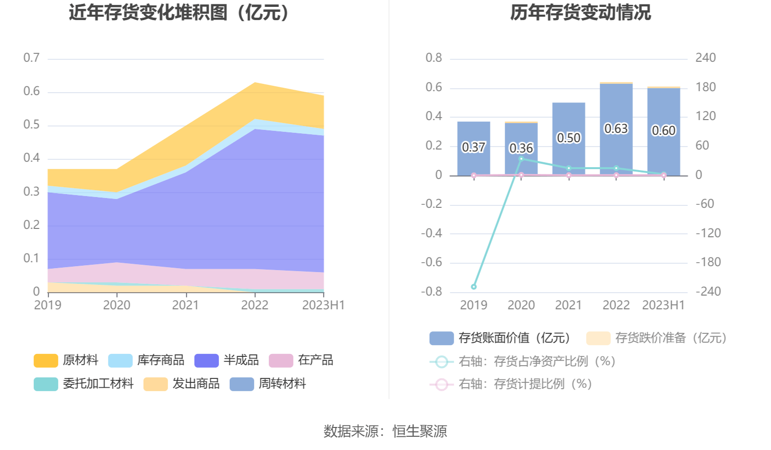 从存货变动来看,截至2023年上半年末,公司存货账面价值为6000.6万元,占净资产的2.88%,较上年末减少272.09万元。其中,存货跌价准备为52.83万元,计提比例为0.87%。
