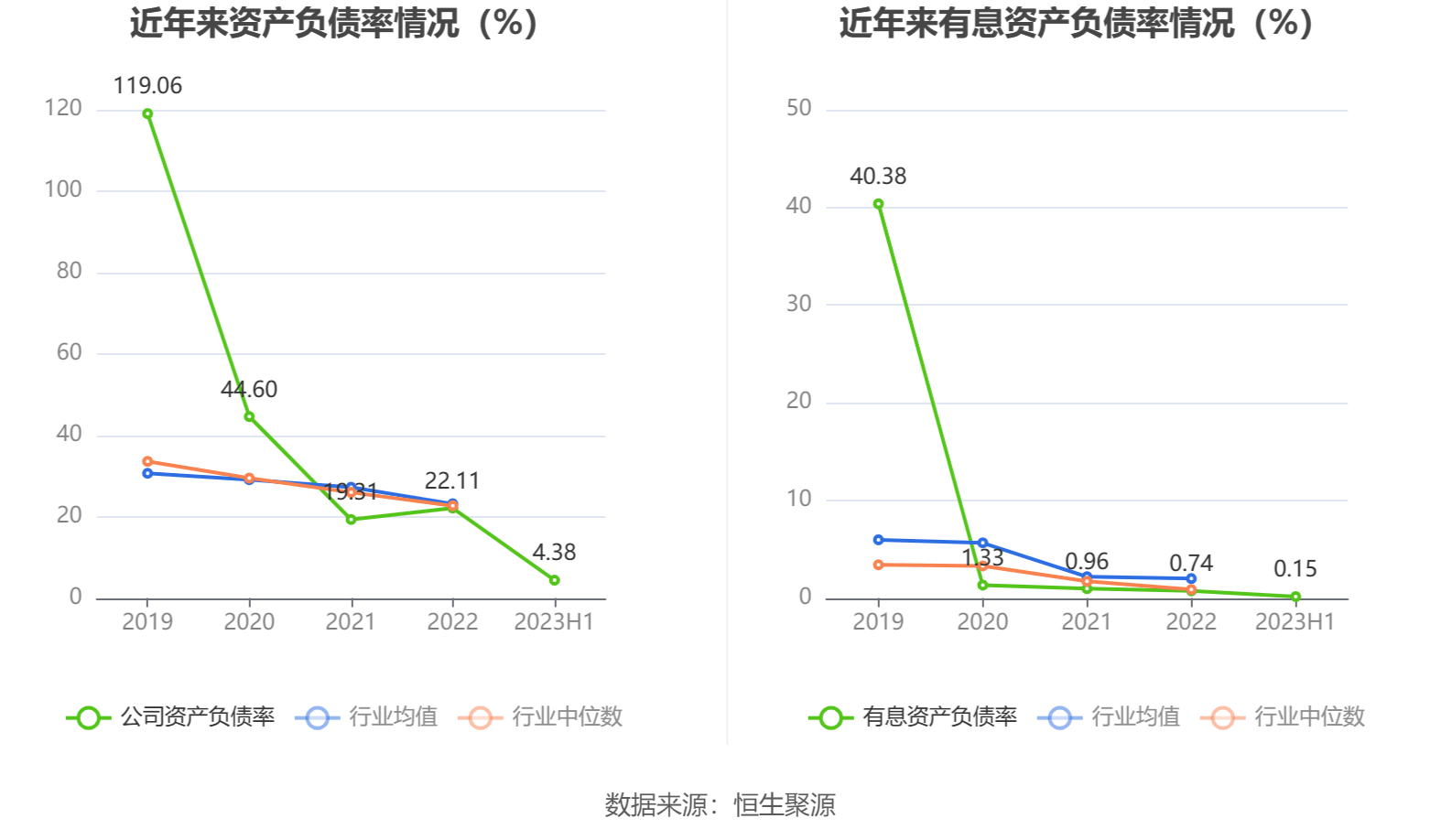 偿债能力方面,公司2023年二季度末资产负债率为4.38%,相比上年末减少17.73个百分点;有息资产负债率为0.15%,相比上年末减少0.59个百分点。