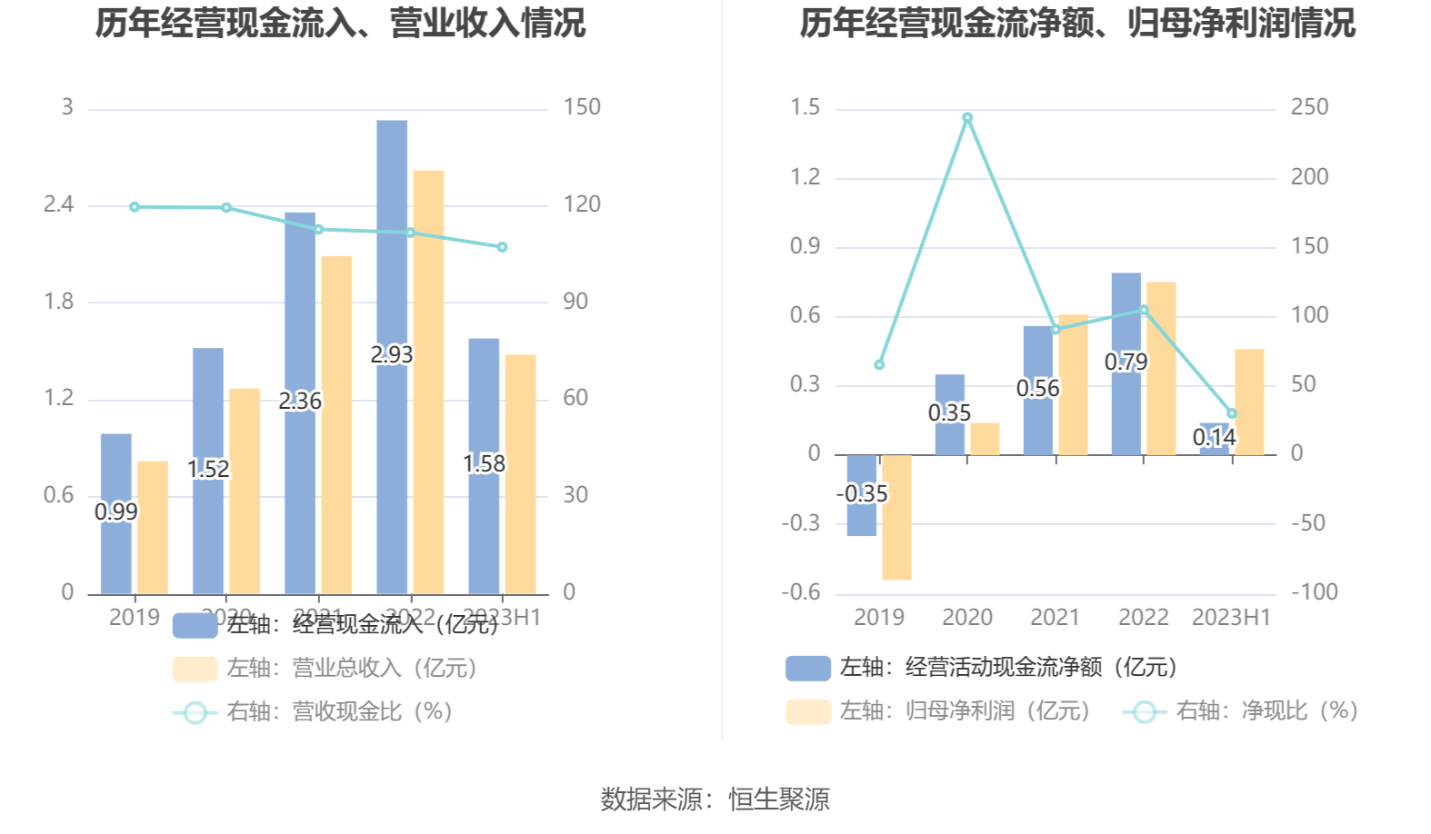 2023年上半年,公司营业收入现金比为107.30%,净现比为30.29%。