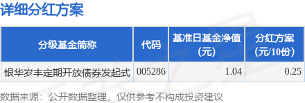 8月30日发布《银华岁丰定期开放债券型发起式证券投资基金分红公告》。本次分红为2023年度第二次分红。公告显示,本次分红的收益分配基准日为8月8日,详细分红方案如下: