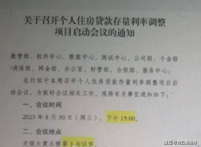 网传交通银行召开存量房贷利率调整启动会的通知
