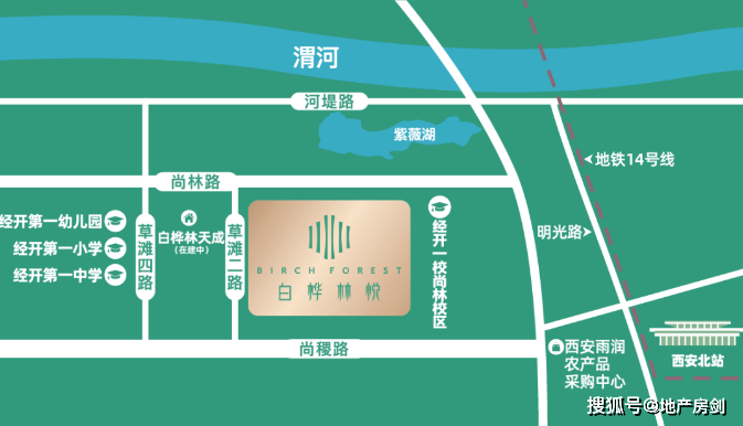 白桦林悦的位置在草滩一路与尚林路交汇处西南角,教育、生态资源是这个项目周边配套最大的亮点!
