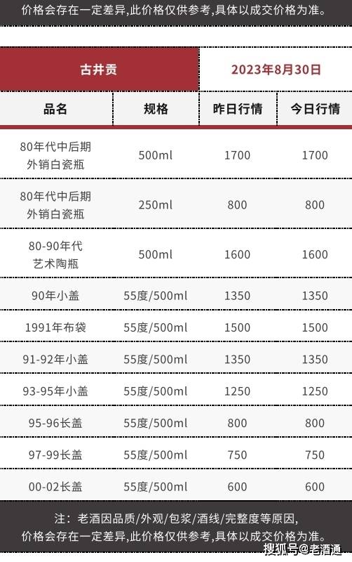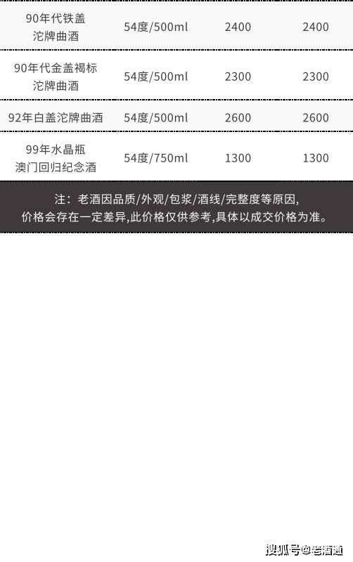 *价格说明:《老酒通》为信息交流服务平台,所发布的商品价格均为参考价,与市场成交价存在一定价差,仅供酒商酒友参考。因老酒价格受酒体、品相、包装、完整度、储存、市场库存等因素影响,即使是同款产品价格也会有所差距,还请知悉。