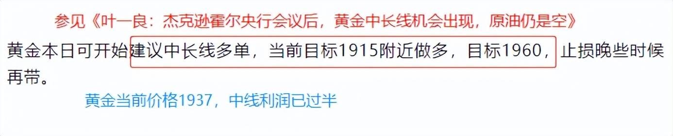 本周一我发布策略《叶一良:杰克逊霍尔央H会议后,黄金中长线机会出现,原油仍是空》。其中提到了黄金将在1915附近开始做多,目标1960。目前金价已经攀升至1937,中线目标过半,接下来还将继续耐心等待。
