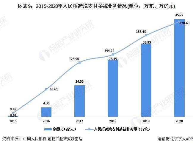 回看过去的数据,2020年,人民币跨境支付系统处理业务总量为220.49万笔,金额达到45.27万亿元,同比增长分别为17.02%和33.44%。平均每天处理业务8855.07笔,金额1818.15亿元。