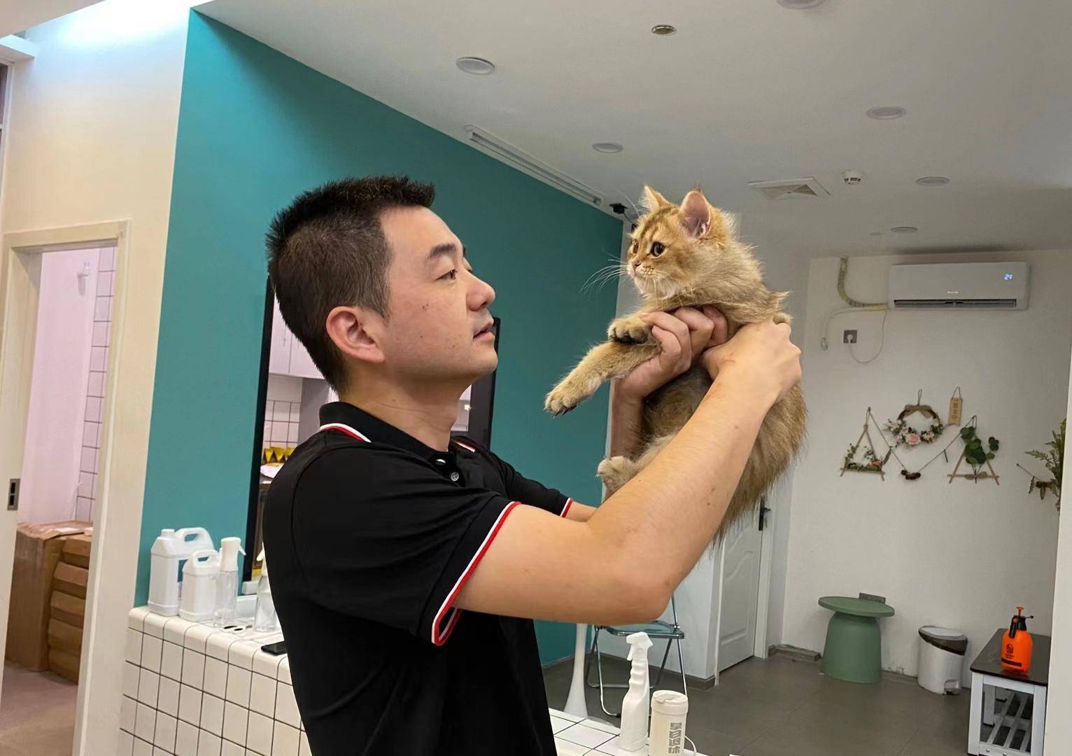李佳伟和一只待领养的小金渐层。