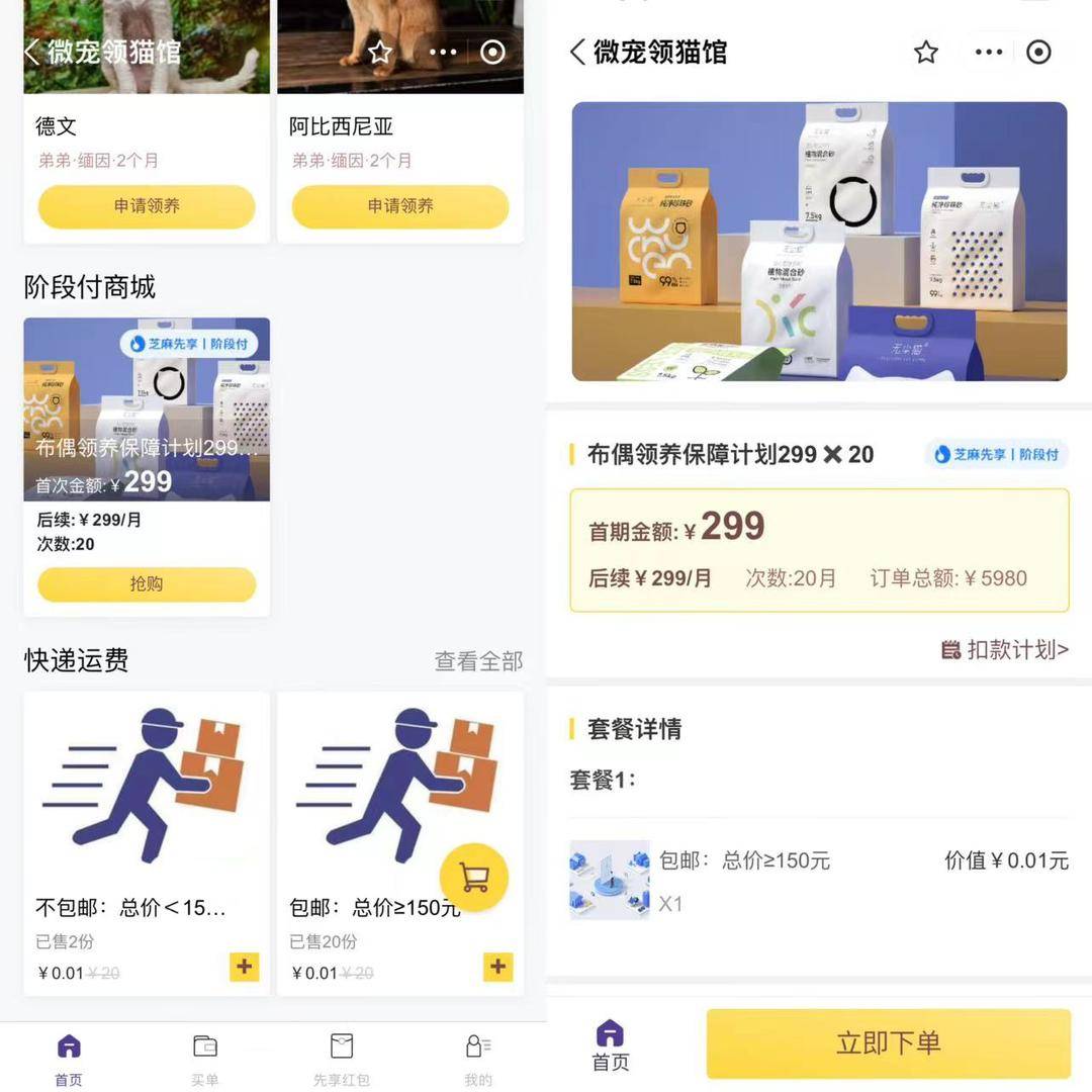 顾客可以在微宠领猫馆免费带走一只猫咪,条件是在接下来的一年、一年半或约定的时间段内,每个月在微宠领猫馆消费一定数额,购买猫粮、猫砂等猫咪生活用品。陆兆奇兄弟俩把“领养协议”浓缩成了只有一页A4纸的“交付单”,剩下的交给“支付宝”。