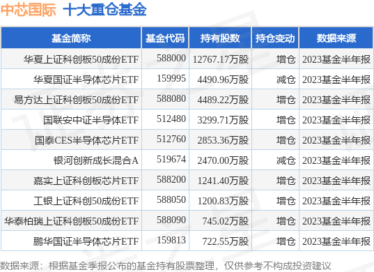 重仓中芯国际的前十大公募基金请见下表: