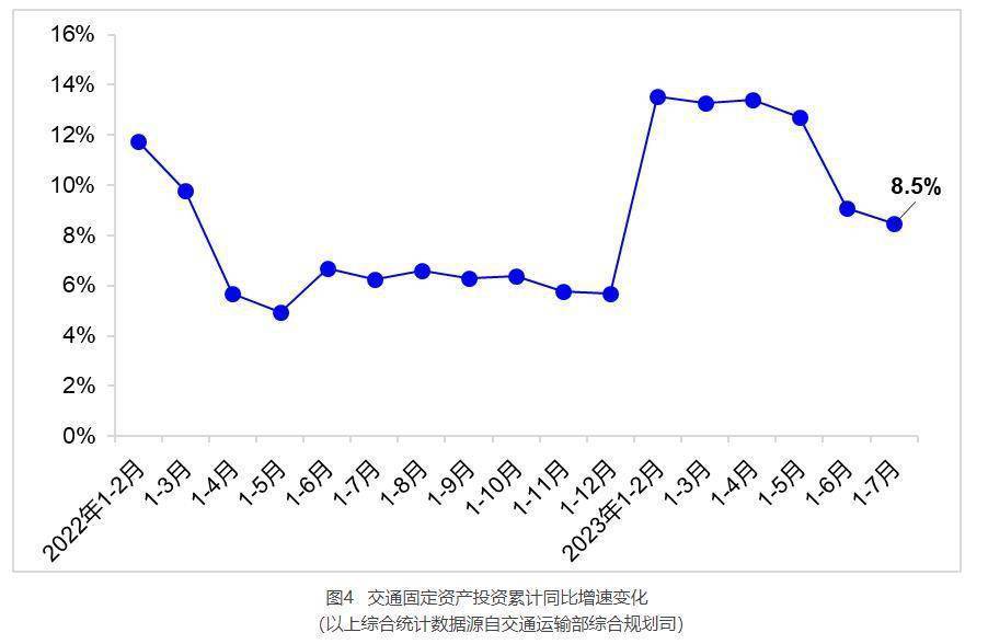 1—7月,完成交通固定资产投资2.2万亿元,同比增长8.5%。其中,完成公路投资1.6万亿元,同比增长8.1%;完成水运投资1105亿元,同比增长25.7%。