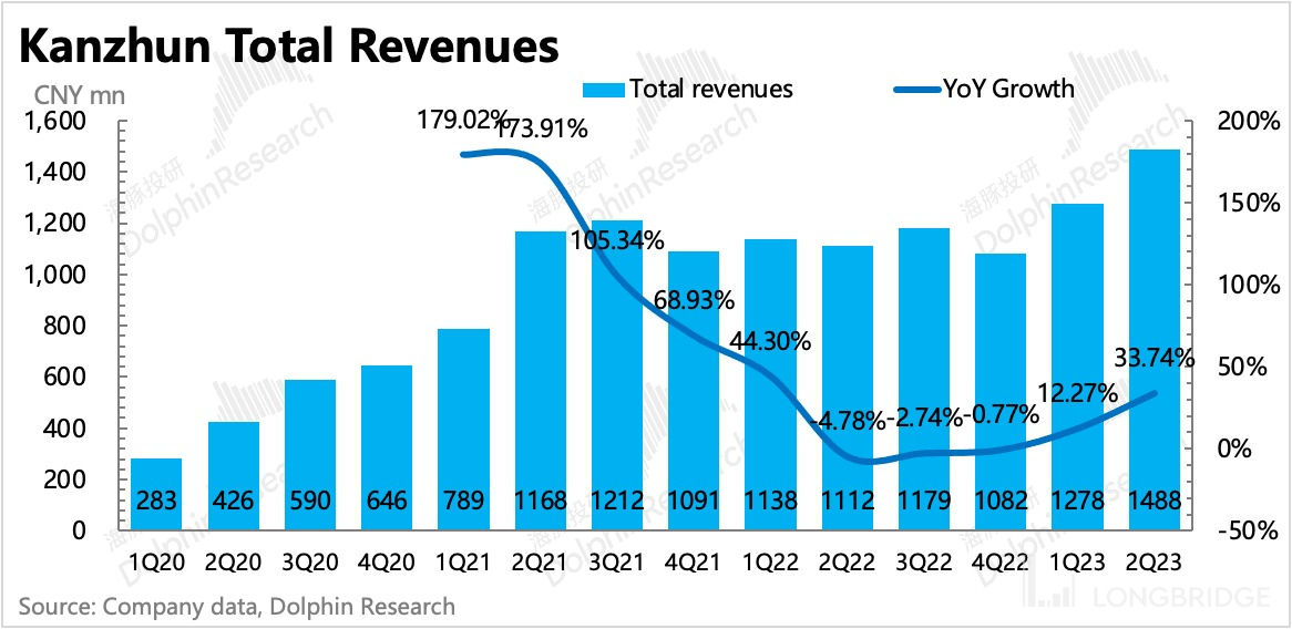 招聘平台的金主是企业方,BOSS 直聘上网络招聘收入也是占比 98.9%,因此总收入增速跟着企业付费来,二季度在低基数下加速增长。