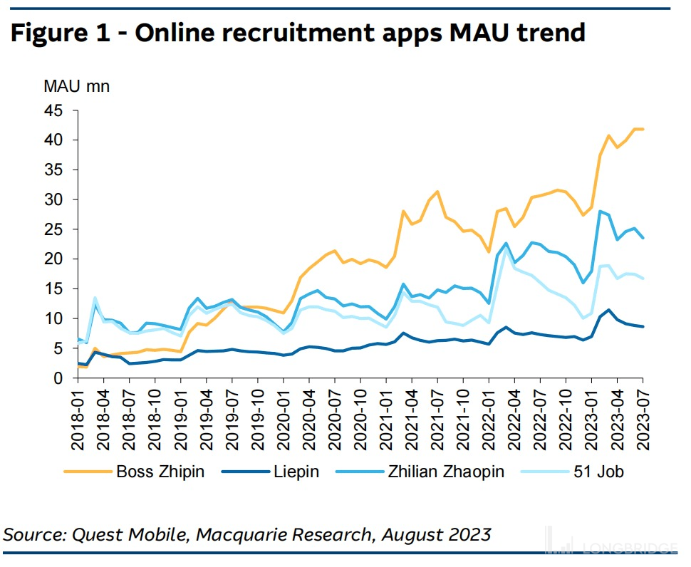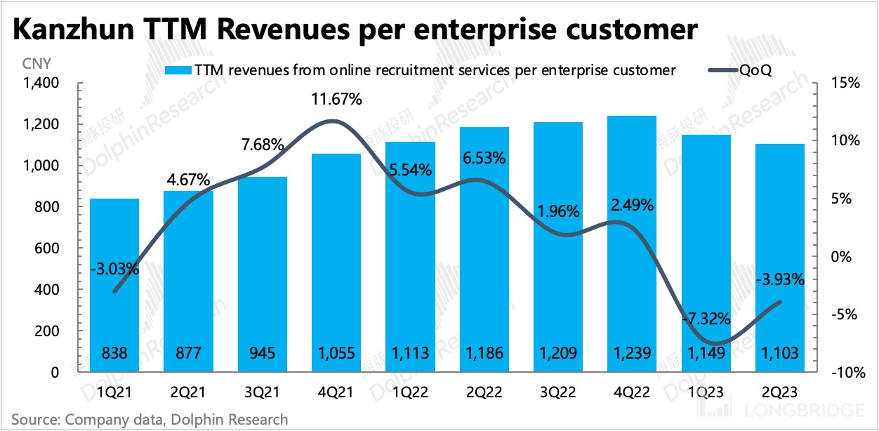 (2)因此对应到当下来看,Q2 的业绩说明的问题其实和 Q1 类似,即宏观压力下,就业市场失衡,一方面增多粥少求职者源源不断,另一方面企业也有控费需求,因此对招聘的付费动力不足。