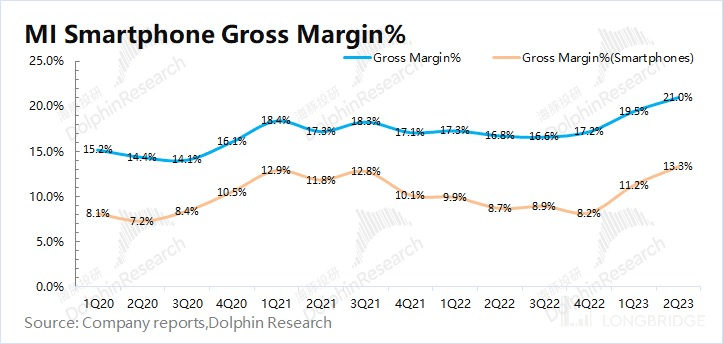 此外海豚君认为,本季度小米手机在印度等海外市场出货承压的情况下,反而导致相对高毛利率的国内市场出货比重提升,这也对公司手机业务的毛利率也会带来结构性提升的影响。