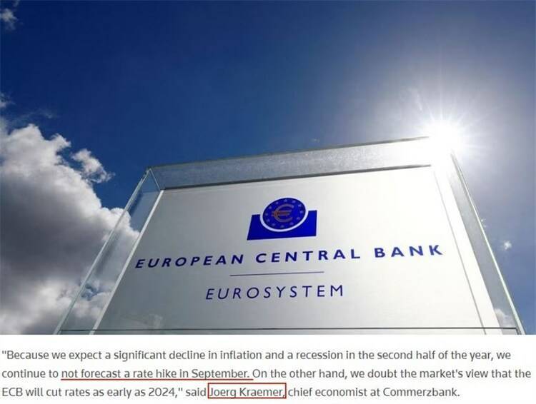 德国商业银行首席经济学家约格·克莱默认为,现在的一切迹象都表明欧元区经济会在今年下半年出现萎缩,欧洲央行将不得不大幅降低其经济增长预期,“9月可能不会进一步加息”。